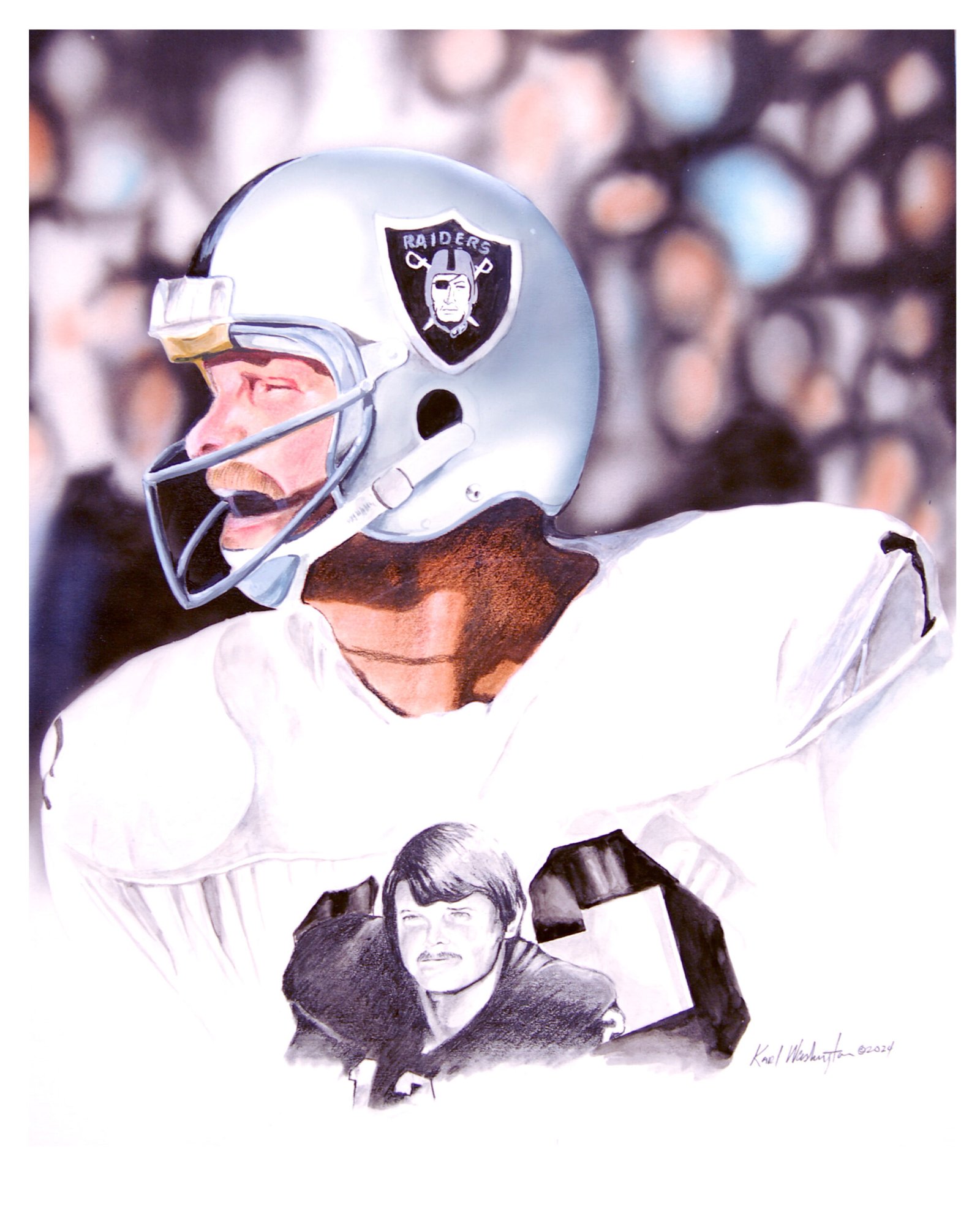 Kenny Stabler, also known as “The Snake,” was a charismatic and talented American football quarterback. This is the latest edition to my Quarterback Series, title “Sportraits”
